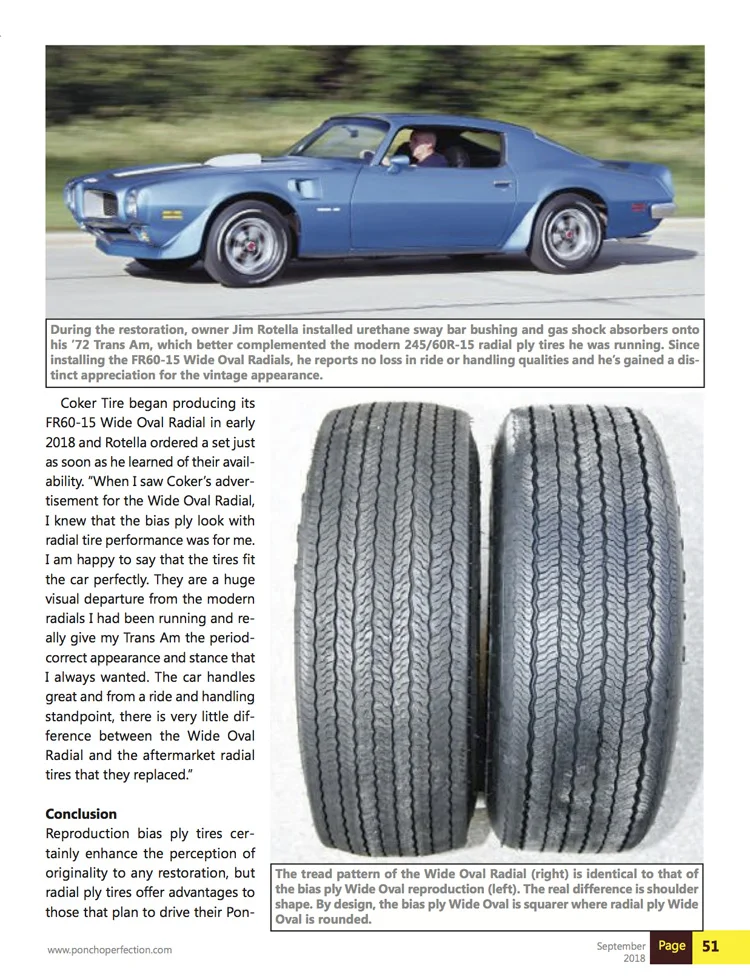 The story of Coker Tire’s new Firestone Wide Oval Radial tire as printed in the September 2018 issue of Poncho Perfection magazine.