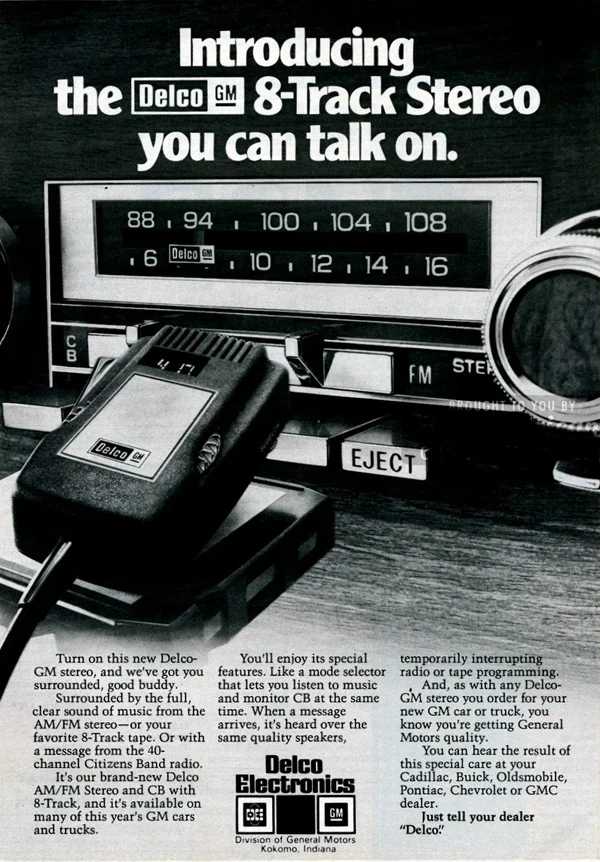 The CB radio popularity boom of the '70s forced GM to develop its own line of CB radios to give new-vehicle buyers a high quality option directly from the factory. The corporation took placed ads like this in automotive, trucking, and radio fan magazines of the era to publicize its offering.